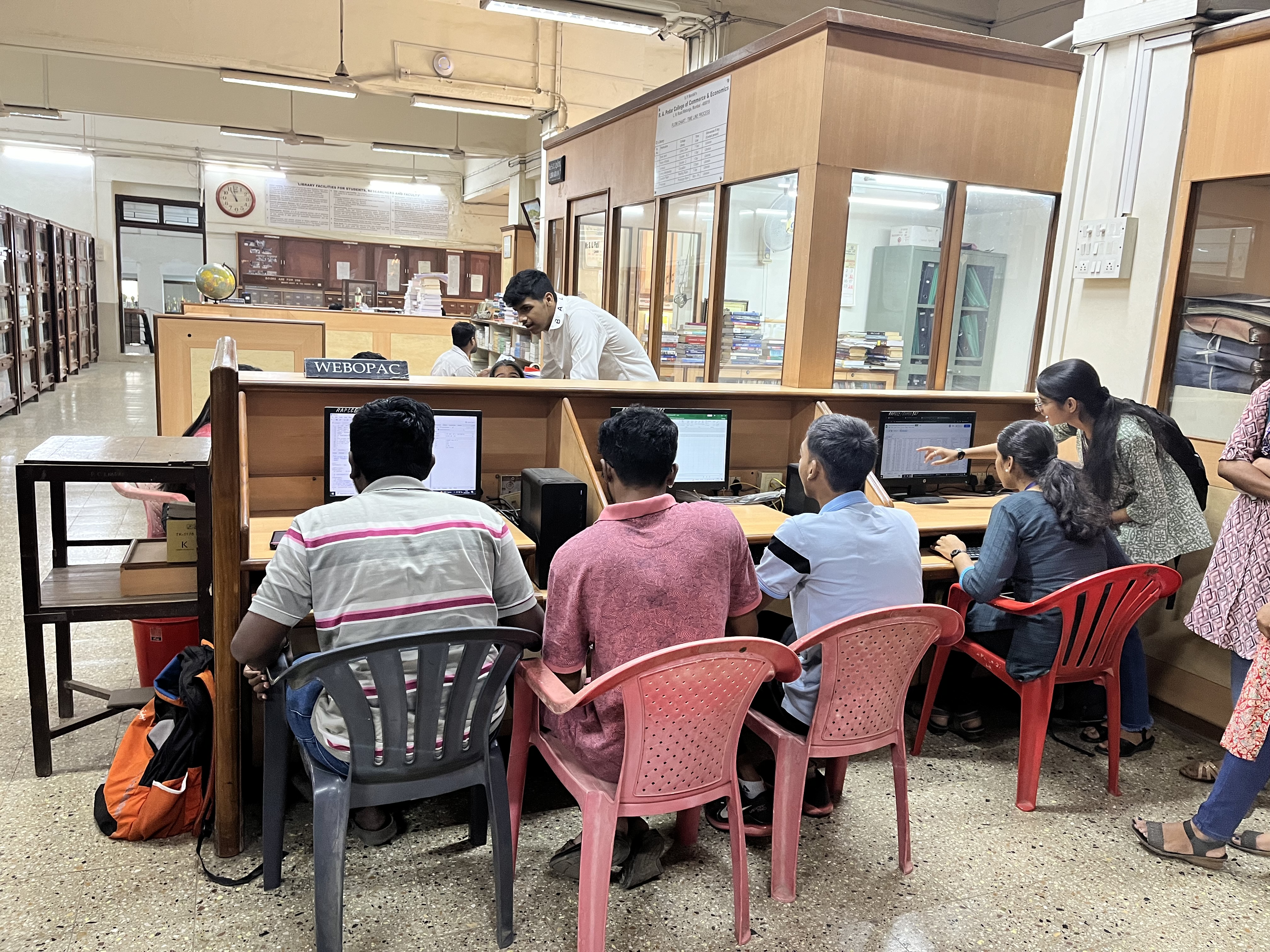The Library of R. A. Podar College of Commerce & Economics (Autonomous) Matunga, Mumbai-19 was established in 1941, the same year when the college came into being. The library is located on the second and third floors of the main building. Mr. P. K. Garde was the first librarian serving the college library from 1942-1945. After retirement from the college, Mr. Garde got the opportunity to work as a librarian of the Hammer shield Section of the UNESCO Library. Mr. L. K. Gorey, Mr. B. V. Modgi, Mr. P. V. Ainapure, Mr. M. Ketkar, and Dr. V.V. Deshpande also served as librarians in this prestigious college in the subsequent years. The college library began with a modest collection of a few thousand books and expanded into a substantial collection with 1,20,096 physical books and 2565 bound volumes of national and international periodicals as of the academic year 2023-24. The college library has transitioned from a print-based to an electronic and hybrid format. Additionally, it began to subscribe to online journals, e-books, and electronic databases.